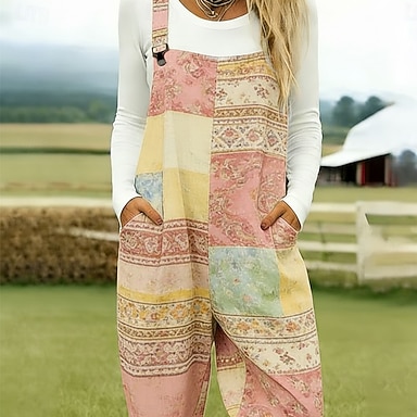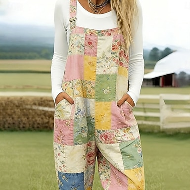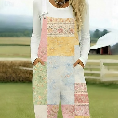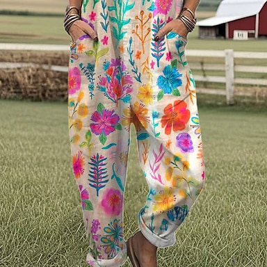 Per donna Salopette Attivo Floreale Senza Maniche Senza maniche Dritto Collo quadrato Tasca con tasca Vacanza Quotidiano Vestibilità comoda Rosa Viola Cachi Estate