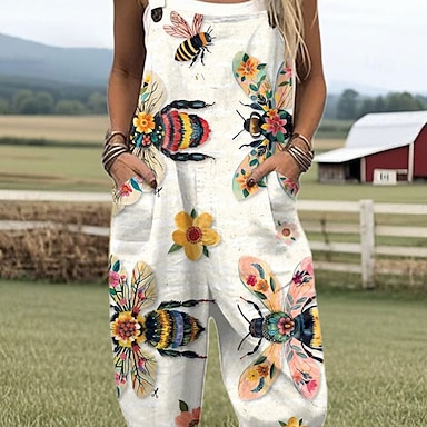 Per donna Tuta Attivo Floreale Senza Maniche Senza maniche Dritto Collo quadrato Tasca Stampato Quotidiano Vacanza Vestibilità comoda Beige Estate
