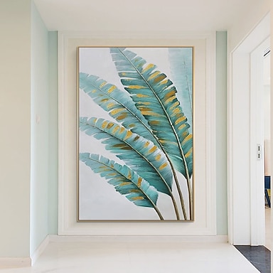 dipinto a mano dipinto a olio arte della parete astratto oro foglie verdi decorazione della casa arredamento tela arrotolata senza cornice non tesa