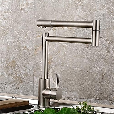 rubinetto da cucina, stile moderno in acciaio inox monocomando un foro nichel spazzolato riempitivo per pentole rubinetti da cucina retrò montati su ponte con acqua calda e fredda