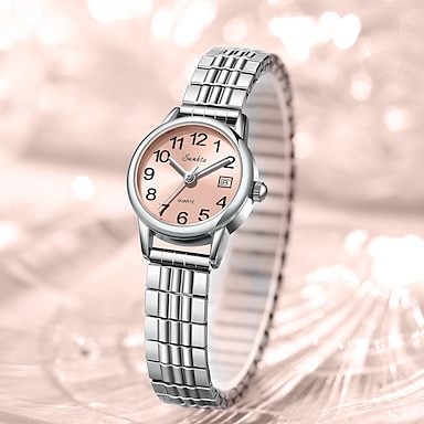 Orologio da donna con cinturino elastico in acciaio, orologio al quarzo da donna di facile lettura con quadrante rosa e datario, orologio da polso con bracciale elastico in acciaio inossidabile per
