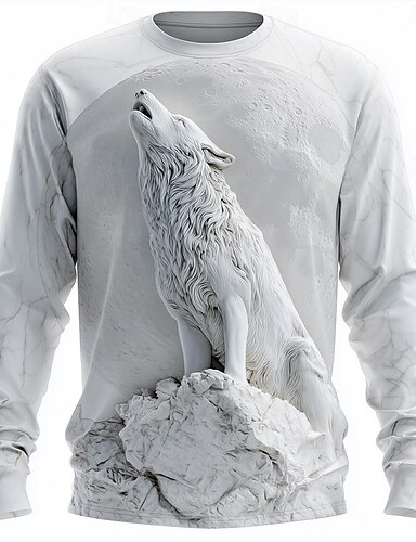 Per uomo Illusione ottica Lupo Maglietta Manica Lunga maglietta Stampa 3D Girocollo Camicia Moda Esagerato 3D Quotidiano Streetwear Bianco 1 Bianco Bianco 2 Estate Primavera Autunno Abbigliamento S M