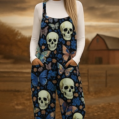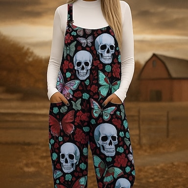 Salopette da donna Leggera Floreale Senza Maniche Gamba Larga Collo Rotondo Tasche Vacanza Quotidiana Vestibilità Larga Nera Bianca Rossa Autunno
