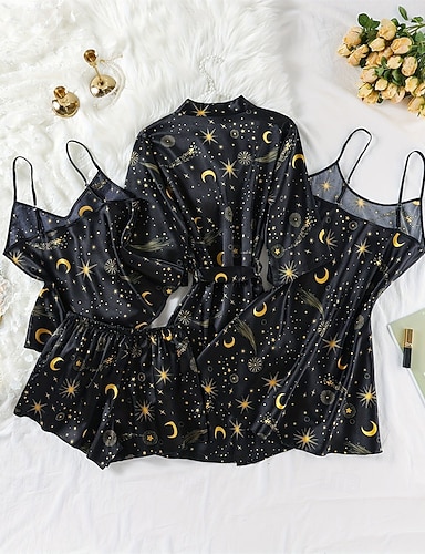Per donna Pigiama Abbigliamento da Casa Set Pigiama Pantaloncini del pigiama Caldo Moda Ultra Sottile Grafico Elastico in vita Pantalone Shorts Casa Vacanza Streetwear Manica Lunga Bavero Nero Estate