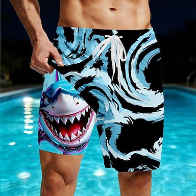 Per uomo Animale Squalo Gergo divertente Pantaloncini foderati Pantaloncini da bagno 2 in 1 Costumi da bagno Pantaloncini da bagno Misura del girovita medio Hawaiano Vacanza al Mare Tasche Laterali