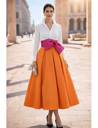 Linea ad A Lunghezza alla caviglia Vestito da Festa Abito da Cocktail Abito da invitata a nozze Abito da cerimonia per signora Manica 3/4 Scollo a V Colletto a Camicia Elegante Vintage Formale Raso