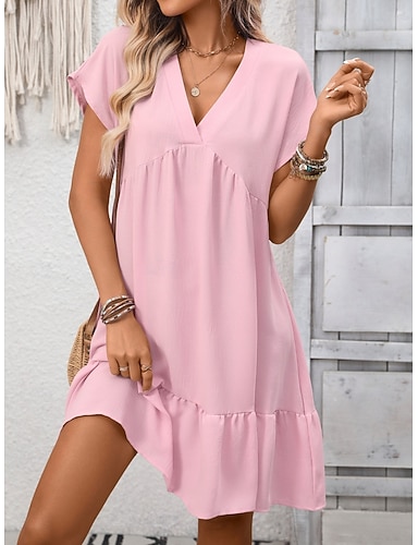 Per donna Mini Abito Vestito Estivo Vestito Casual Abito con balze Elegante Moda Moderno All'aperto Vacanza Uscire Vestibilità comoda Semplice Manica Corta Scollo a V Nero Rosa Rosso Blu marino