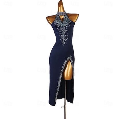 abito da ballo blu navy da donna, abbigliamento da spettacolo