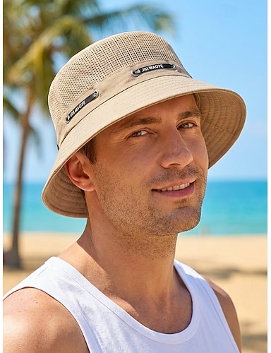 Cappello a secchiello da uomo in poliestere traspirante e leggero, disponibile in vari colori, ad asciugatura rapida, ideale per attività all'aperto come vacanze al mare, pesca, escursionismo e per