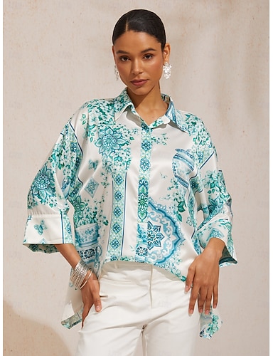 camicia a maniche a pipistrello in raso setoso stile festa nella giungla