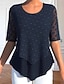 Per donna Top in chiffon Pizzo Quotidiano Casual Manica Corta Girocollo Top lunghi Casuale Blu marino Estate Primavera weekend