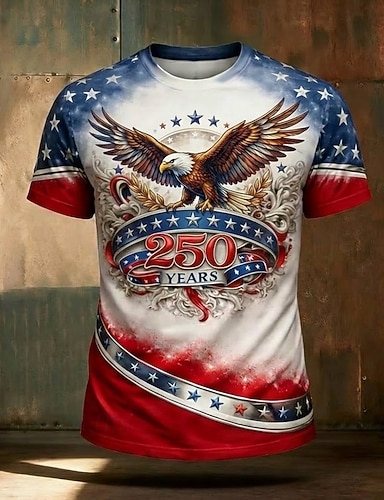 4 luglio 2026 250° Giorno della Memoria Moda Uomo Patriottico Patriot Stampa 3D Bandiera Americana Veterano T-Shirt Manica Corta Street