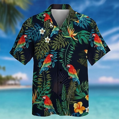 Per uomo Foglia Pappagallo Piante Tropicali Camicia Camicia con colletto cubano Camicia hawaiana estiva Manica Corta Hawaiano Vacanza Ferie Abbigliamento mare Estate Primavera Camicia con colletto