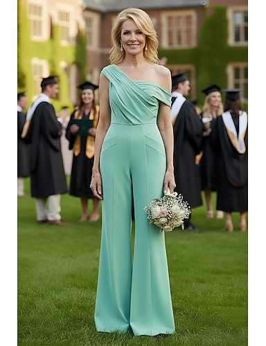 Tute Lunghezza al pavimento Tuta Abito da cerimonia per signora Senza Maniche Monospalla Elegante Vintage Ospite di nozze Ferie Ricevimento di matrimonio Crepe Elasticizzato con Fiocco/Fiocchi
