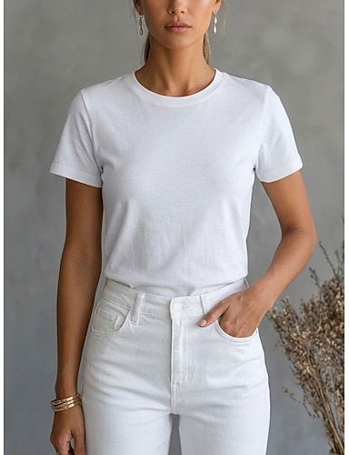 Per donna Maglietta Camicia di cotone Tinta unica Moda Elegante Essenziale Manica Corta Girocollo Top Regolari Casuale Quotidiano Uscire Blu Nero Bianco Verde chiaro Rosa Estate Primavera