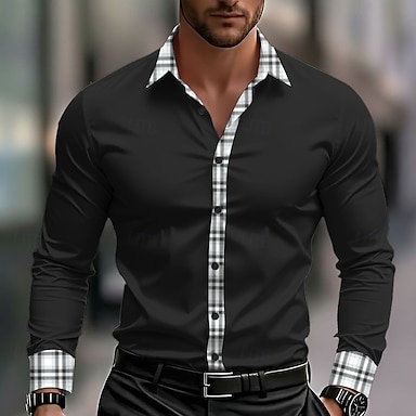 Per uomo Camicia Camicia elegante Camicia casual Camicia con Bottoni Semplice Formale Matrimonio Nero Bianco Blu Manica Lunga Collo ripiegato Estate Primavera Abbigliamento Patchwork