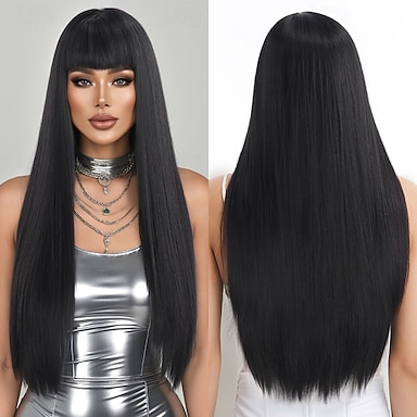 Parrucche sintetiche Ricciolo gonfiabile Kinky liscia Taglio asimmetrico Frangetta dritta A macchina Parrucca 30 pollici A1 Capelli sintetici Per donna Classico Comodo Colore Graduale e Sfumato