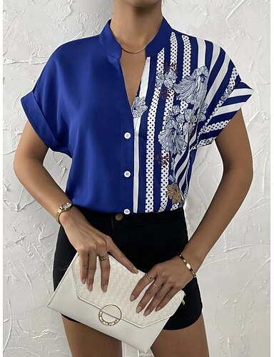 Per donna Blusa Bottoni Stampato Floreale A righe Vintage Casual Manica Corta Scollo a V Top Regolari Quotidiano Blu Bianco Rosa Rosso Arancione Estate Primavera