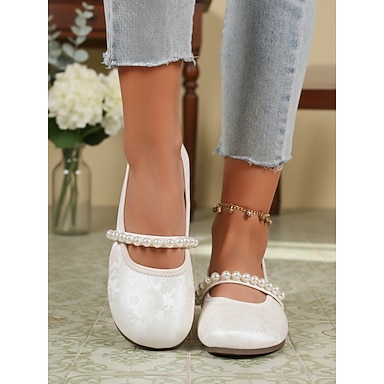 ballerine mary jane beige da donna con cinturino in finta perla – scarpe comode e larghe con punta tonda, elegante stile vintage per l'uso quotidiano, matrimoni, feste del tè e viaggi