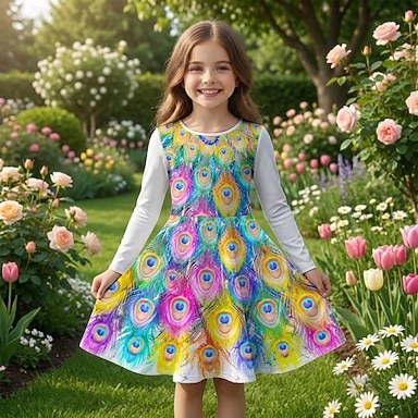 ragazze' 3D Grafico Pavone Abito Manica Lunga Stampa 3D Primavera Autunno Quotidiano Vacanza Feste Casual Principessa Bello Bambini 4-12 Anni Vestito Casual Abito a trapezio Lunghezza al ginocchio