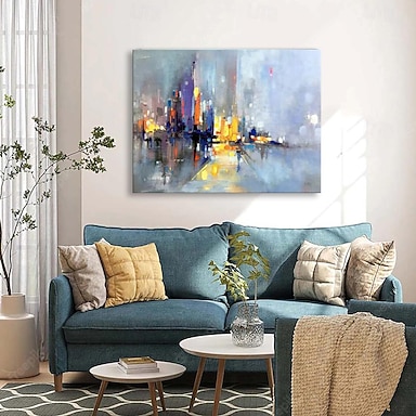 pittura a olio astratta urbana moderna dipinta a mano struttura spessa coltello pittura arte da collezione decorazione decorazione della parete pittura originale per soggiorno arte della parete