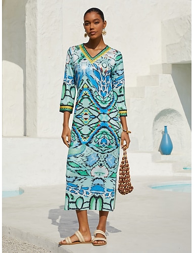 Per donna Abito Midi Abito a trapezio Abito Estivo Casual Vestibilità comoda Tinta unica Manica Lunga Scollo a V Blu Giallo Marrone Grigio Estate Primavera