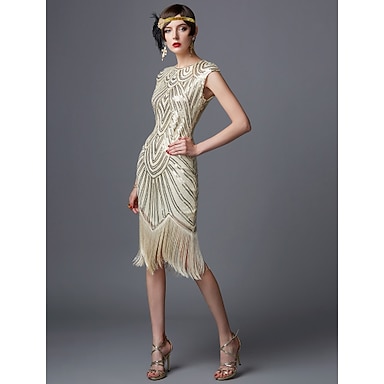 Anni Ruggenti Anni 1920 Lunghezza al ginocchio Vestito Nozze Addio al celibato Cortissima Il grande Gatsby Charleston Paillettes Patchwork Scollo Tondo Costume Per donna Balli di fine anno Festa