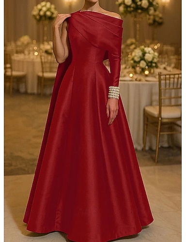 Abito da ballo Linea ad A Lunghezza al pavimento Abito da ballo con mantello Abito da Sera Abito formale Elegante Stile Celebrità Manica Lunga Senza Spalle Festa in giardino Matrimonio Raso