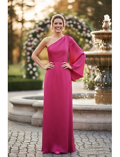 Tubino Colonna Lunghezza al pavimento Abito da invitata a nozze Abito da sera Abito da cerimonia per signora Manica Corta Manica Lunga Monospalla Elegante Semplice Formale con Tinta unita