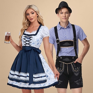 coppie oktoberfest birra costume dirndl vestito trachtenkleider cameriera oktoberfest coppia vestiti tedesco monaco wiesn uomo donna stile tradizionale stoffa halloween carnevale