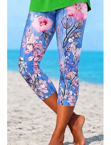 Per donna Pantaloni capri Leggings Vacanza Moda Hawaiano Capri Misura del girovita medio Floreale Grafico Stampa Comodità Morbido Traspirante Elasticizzato Casuale Quotidiano Vacanza Blu Estate