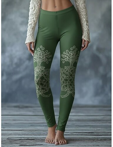 Per donna Leggings Leggings comodi Vacanza Vintage Stile Etnico Lunghezza intera Vita Alta Grafico Stampa Confortevole Elasticizzato Casuale Quotidiano Vacanza Verde Primavera Autunno Vestibilit