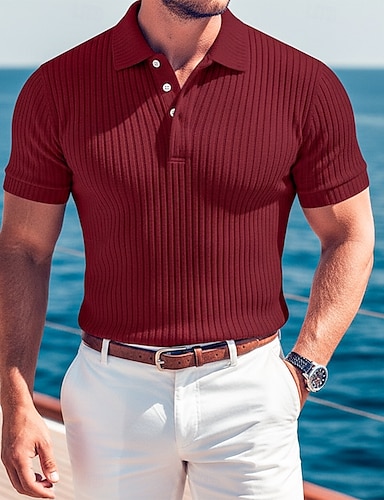 Per uomo Top a Maglia a Coste Testurizzato Casuale Lavoro Bavero Colletto Polo a Coste Manica Corta Essenziale Moderno Blocco di colori Bottoni Lavorato a maglia Primavera & Estate Vestibilit