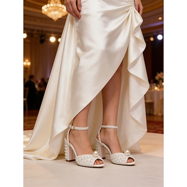 tacchi da sposa di lusso con perle per la sposa – eleganti scarpe da sposa con tacco a blocco per matrimoni in chiesa e in sala da ballo