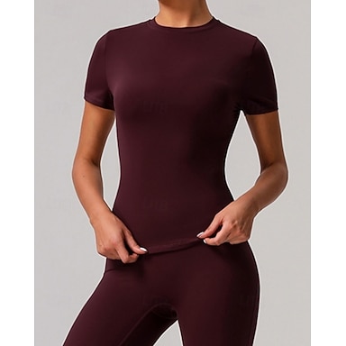 Per donna Tinta unita Maglia atletica Maglia da tennis Maglietta da tennis Top sportivo Manica Corta Asciugatura Rapida Taglia piccola Traspirante Tennis Pickleball Corsa Girocollo Maglietta Top Nero