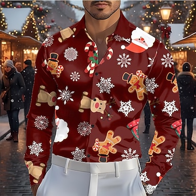 Natale Per uomo Babbo Natale Fiocco di neve omino di pan di zenzero Camicia Camicia in raso Camicia elegante Manica Lunga Moda Casual All'aperto Ferie Primavera Autunno Collo ripiegato Stampa 3D