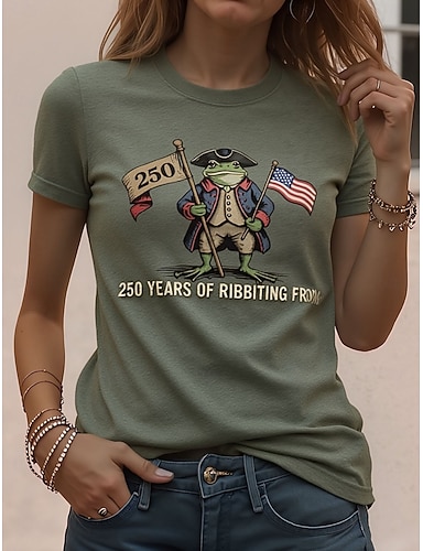 Giorno dell'Indipendenza Americana Per donna Maglietta Stampato Grafico Lettera Bandiera Americana Vintage Elegante Classico Manica Corta Girocollo Top Regolari Quotidiano Nero Bianco Rosso Rosso