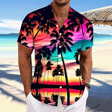 Per uomo Albero di Cocco Colore sfumato Piante Tropicali Camicia hawaiana estiva Camicia con Bottoni Camicia Aloha Manica Corta Hawaiano Ferie Abbigliamento mare Estate Primavera Collo ripiegato