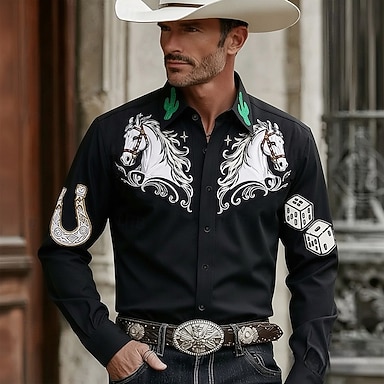 Per uomo Cavallo Cactus Ferro di cavallo Camicia Camicia Western Camicia da cowboy Manica Lunga Vintage Retrò Casuale All'aperto Abbigliamento da lavoro Estate Primavera Collo ripiegato Stampa 3D