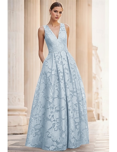 Linea ad A Lunghezza al pavimento Abito da Sera Da principessa Abito formale Elegante Spacco Alto Senza Maniche Scollo a V Matrimonio Formale Tasca Jacquard con Tasca