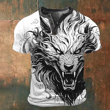Per uomo Grafico Animale Maglietta Maglia Henley Manica Corta Stampa 3D Moda Classico Retrò Vintage Sport all'Aperto Ferie Uscire Primavera & Estate Blu Bianco Rosso Marrone Verde Henley Maglietta