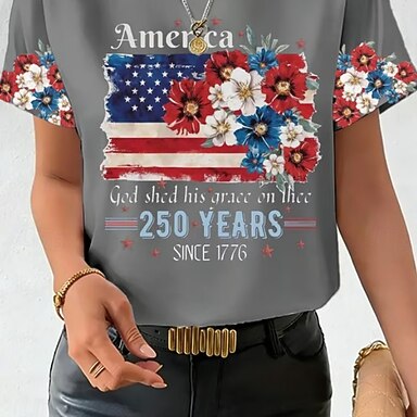 Giorno dell'Indipendenza Maglietta Patriottica da Donna Grafica Bandiera Vintage Elegante Classica Maniche Corte Collo Rotondo Regular Tops Print Bianco Rosso Estate Primavera