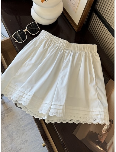 Per donna Pantaloni da tuta Chinos Shorts Vacanza Moda Streetwear Corto Vita Alta Semplice Pizzo Fascia Elastica Comodo Comodità Morbido Elasticizzato All'aperto Streetwear Nero Bianco Estate