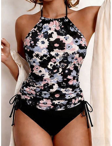Per donna Costumi da bagno Tankini Due pezzi Gonna Costume da bagno Coulisse Elegante Vacanza Floreale Scollo Tondo Senza Maniche Costumi da bagno