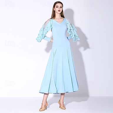 Balli da Sala Vestito Pieghe Volant Giunzione Per donna Feste Allenamento Performance Manica Lunga Spandex Nylon
