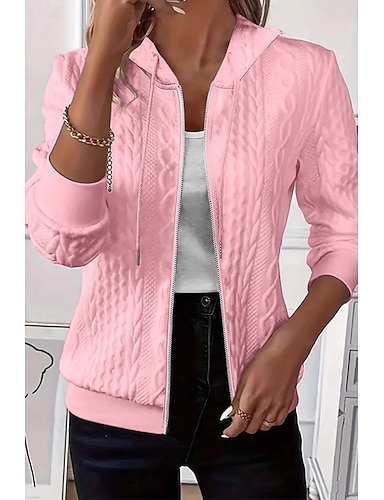 Per donna Giacca sportiva Esterno Cerniera Tinta unica Tenere al caldo Di tendenza Standard Capispalla Manica lunga Autunno Nero S