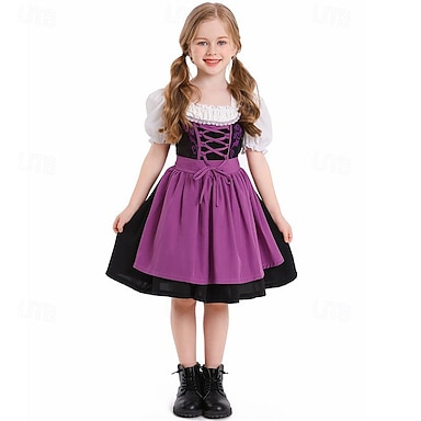 Halloween Oktoberfest Vestito Dirndl Abiti tradizionali Oktoberfest / Birra Bavarese Wiesn Prati Ragazze Panno in stile tradizionale Vestito Grembiule