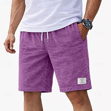 Per uomo Shorts Pantaloncini Estivi Pantaloncini casual Pantaloncini con lavaggio acido Coulisse Elastico in vita Tinta unita Comodità Traspirante Lunghezza al ginocchio Spiaggia Vacanza Ferie Moda