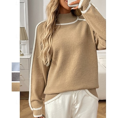 Per donna Tinta unita Top casual Pullover Maglione Autunno / Inverno Manica Lunga Athleisure Caldo Morbido All'aperto Vacanze Blu Cachi Grigio abbigliamento sportivo Abbigliamento sportivo