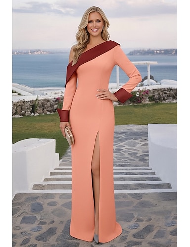 Tubino Colonna Lunghezza al pavimento Abito da invitata a nozze Abito Formale Abito da sera Abiti da Ballo Elegante Manica Lunga Monospalla Balli di fine anno Formale Raso Tessuto Elasticizzato con